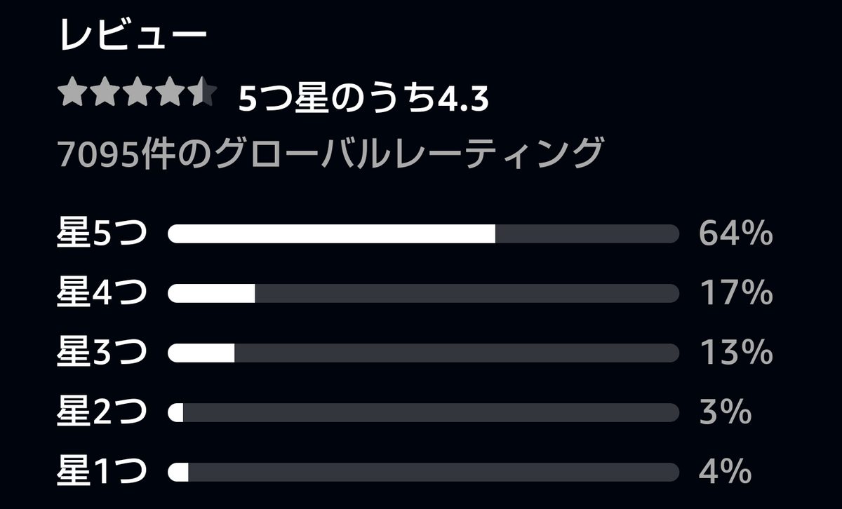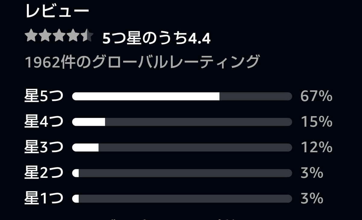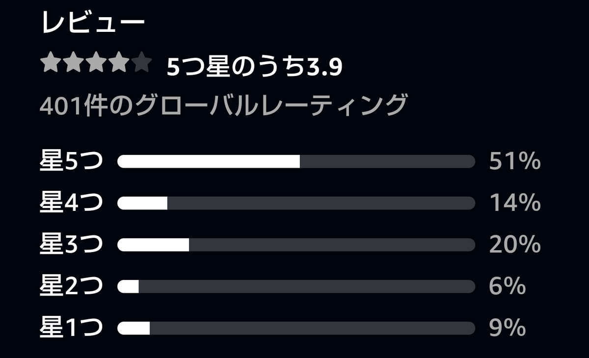 しかしながら、問題はそんなことではありません。気になるのは★1レビューの割合です。