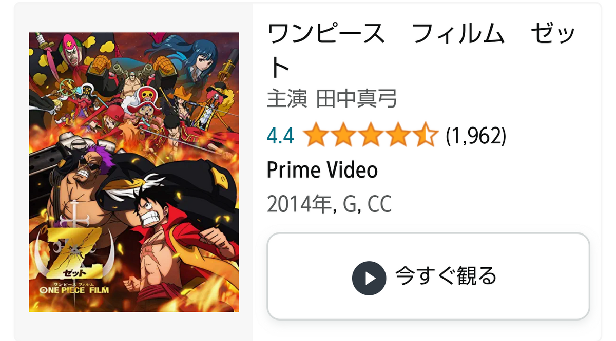 Zは全体で★4.4と、ここ最近のONE PIECE映画の中では最も評価が高いです。